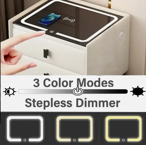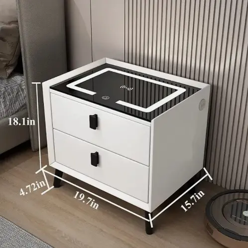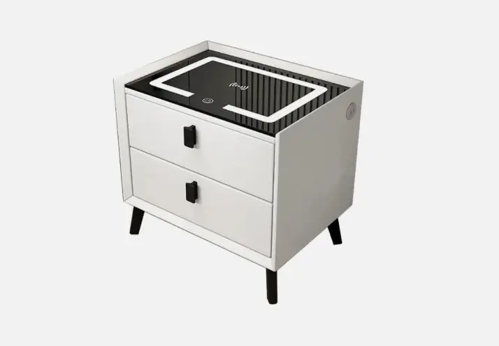 Modernizá tu dormitorio con la mesa de luz definitiva. Con superficie de carga inalámbrica, iluminación LED táctil y un innovador lector de huella dactilar para tus objetos más valiosos, combina el diseño minimalista con la máxima tecnología de confort.